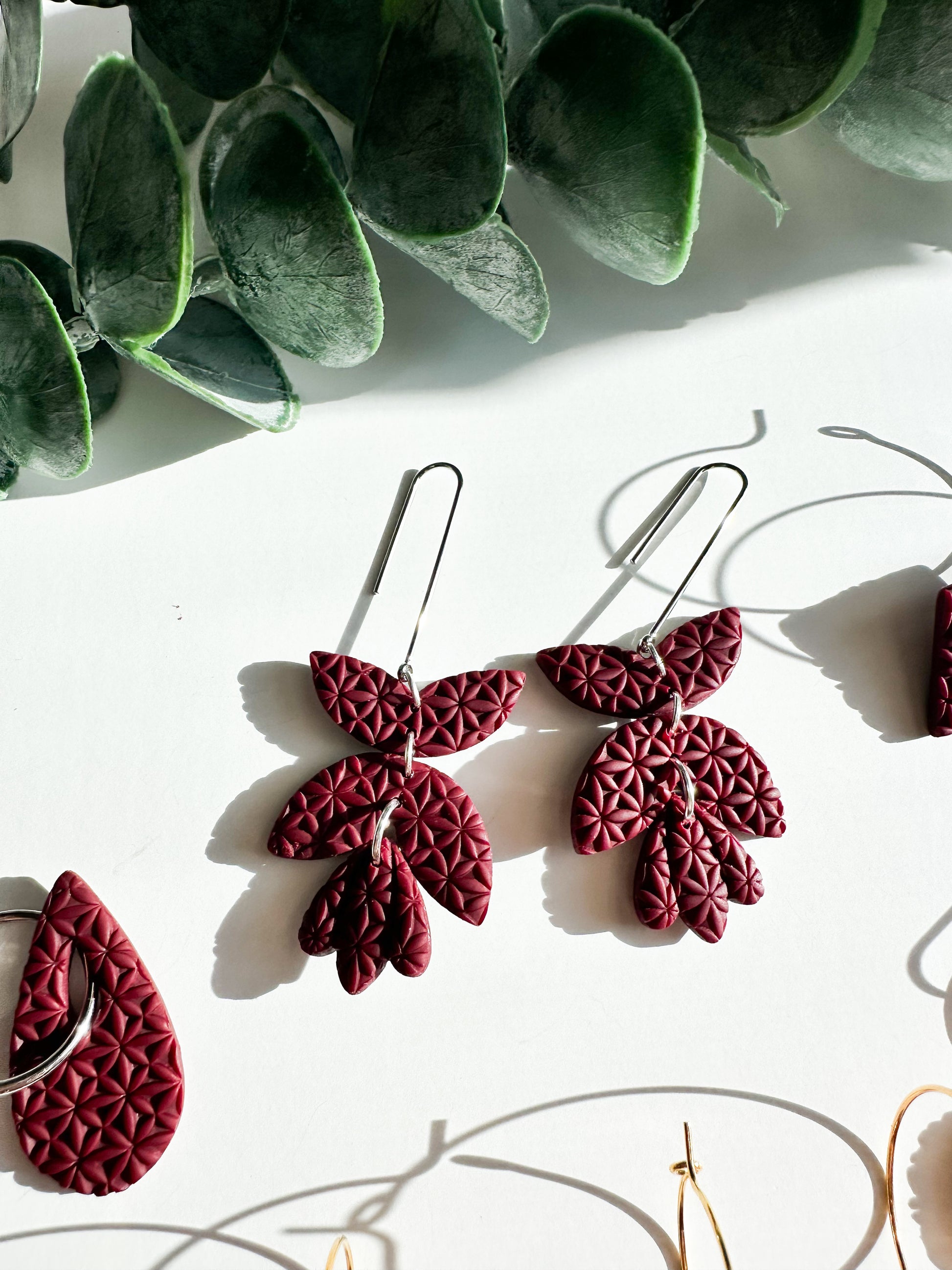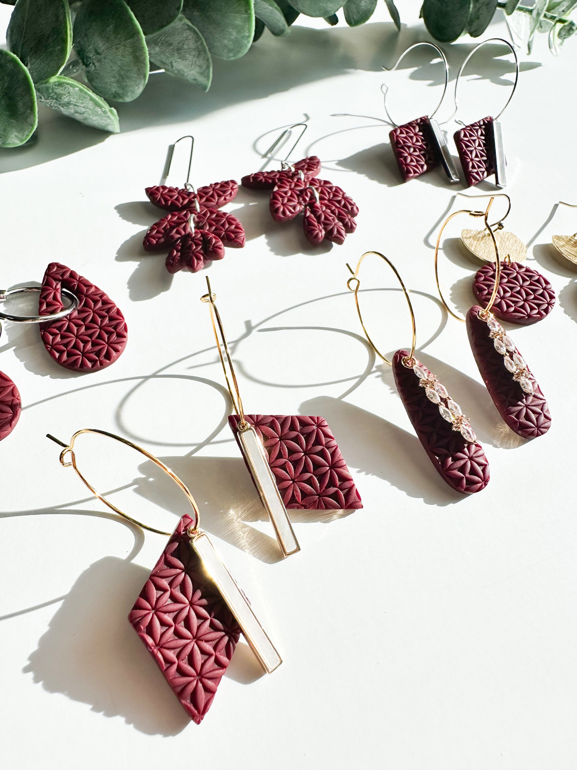 Moody maroon with a texture design.