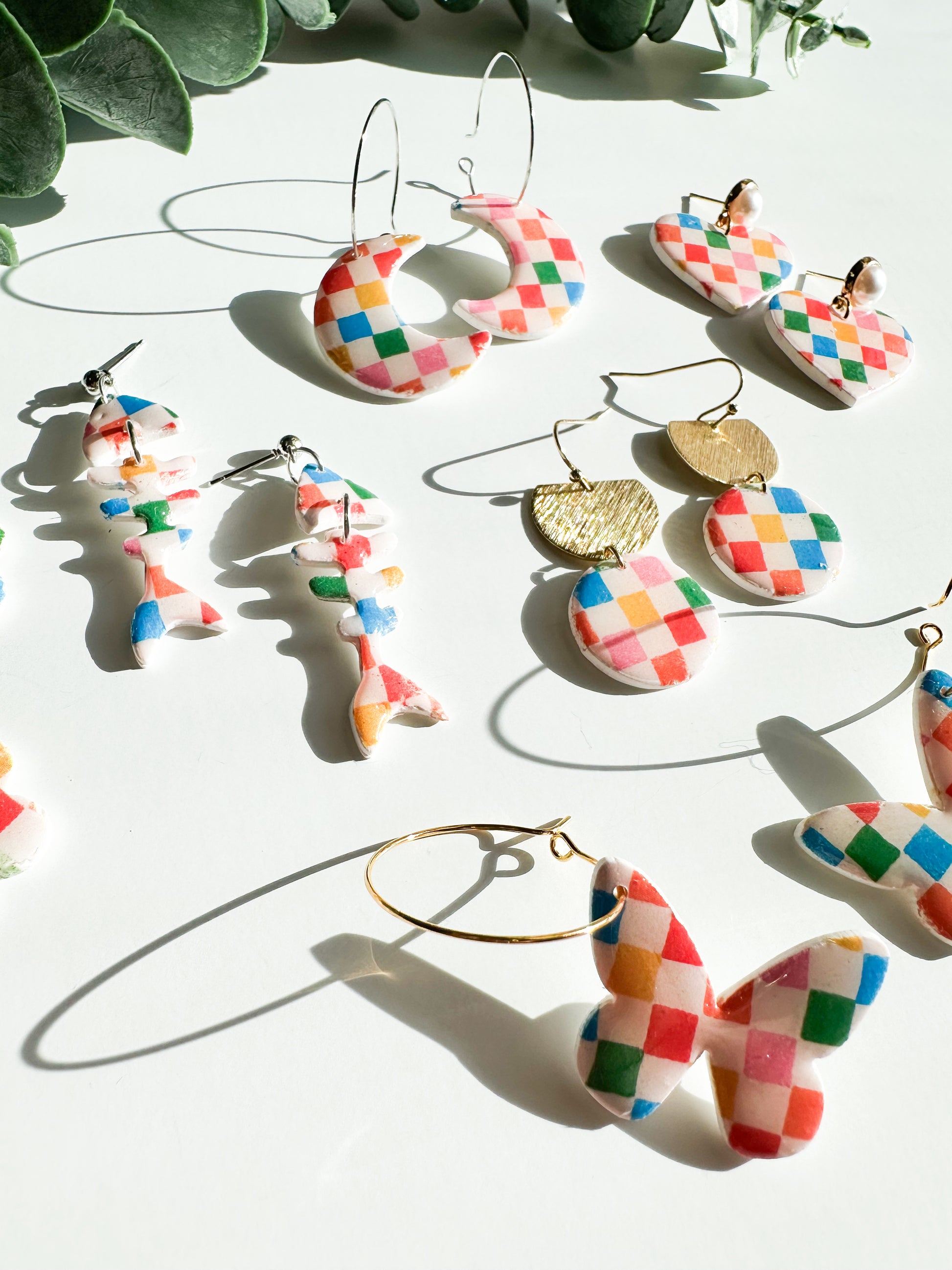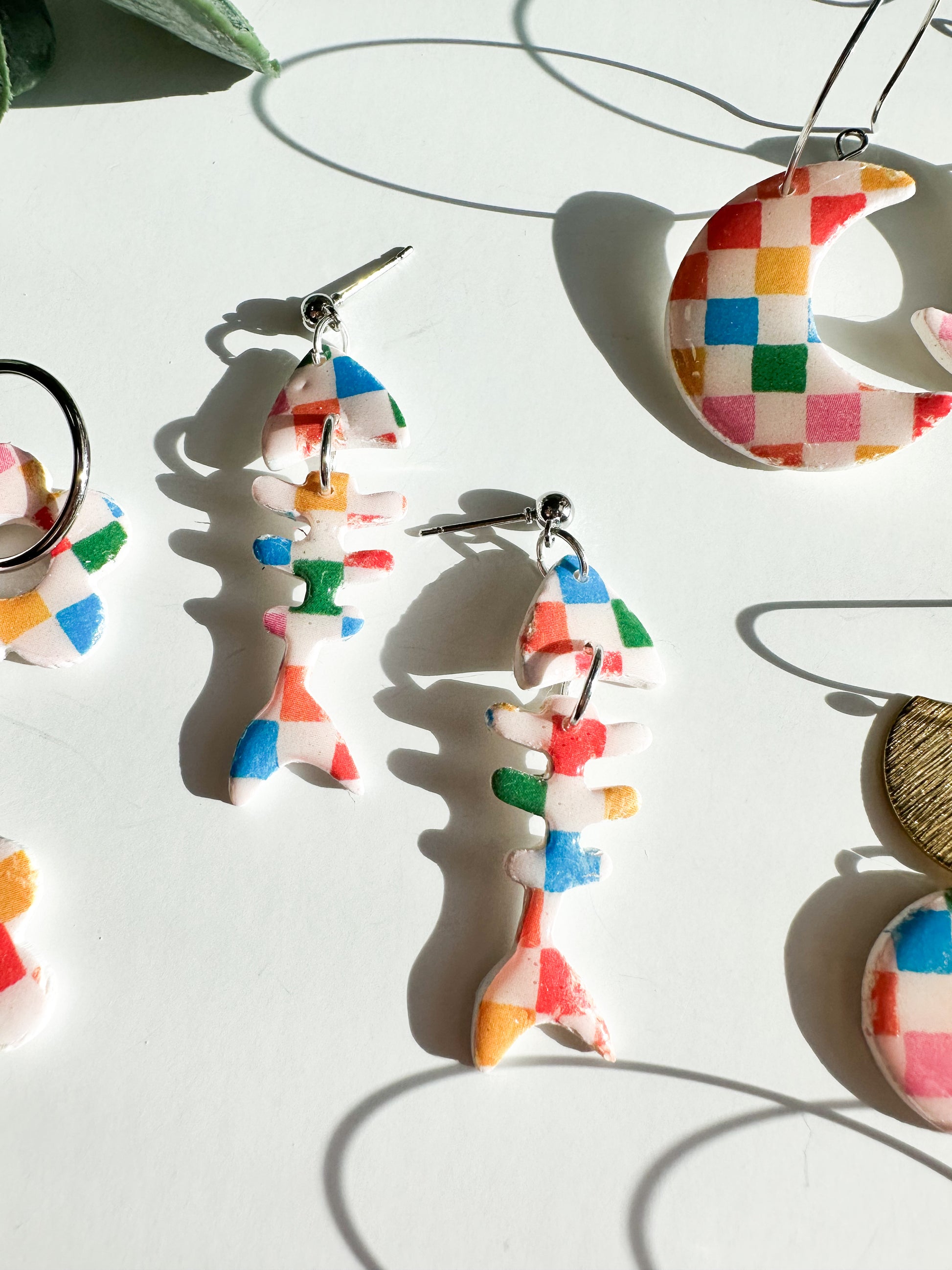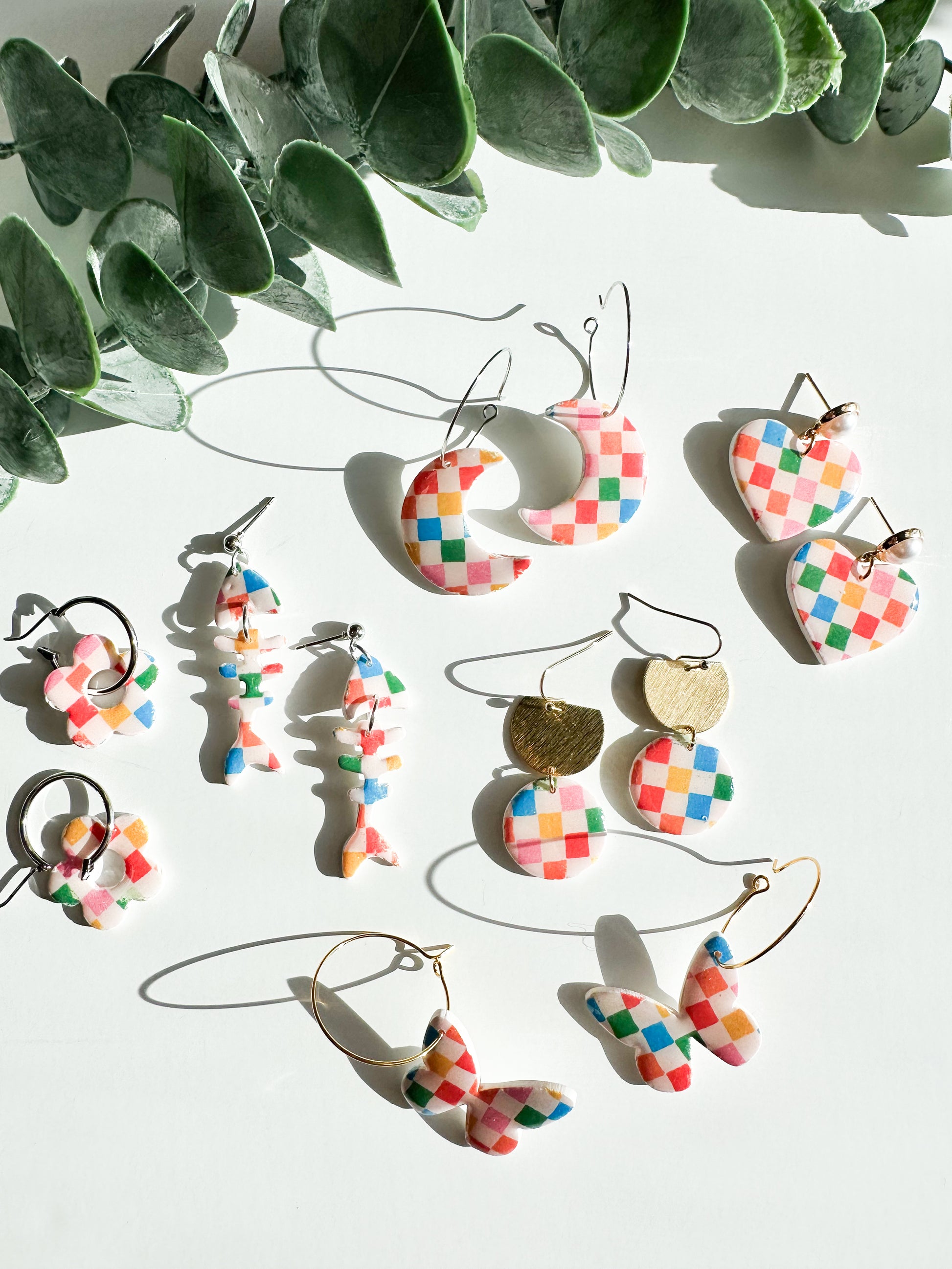 White and colorful checker design.